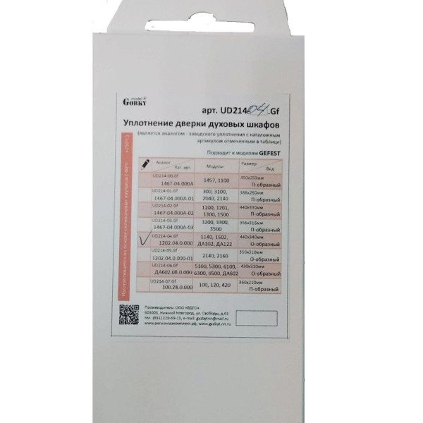 Уплотнение дверки духовки Gefest 1140, 1502, ДА102, ДА122, 1202.04.0.000 (арт.UD214-04.Gf) О-образное, 440*340мм