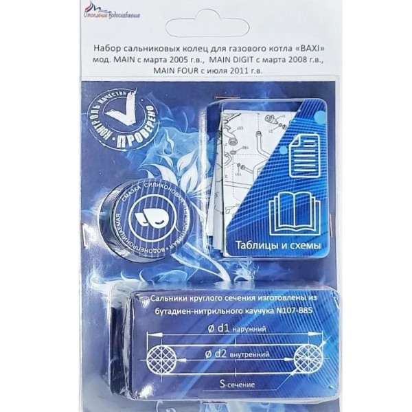 Набор сальниковых колец для газового котла "BAXI" мод. MAIN с марта 2005 г.в., MAIN DIGIT с марта 2008 г.в., MAIN FOUR с июля 2011 г.в.